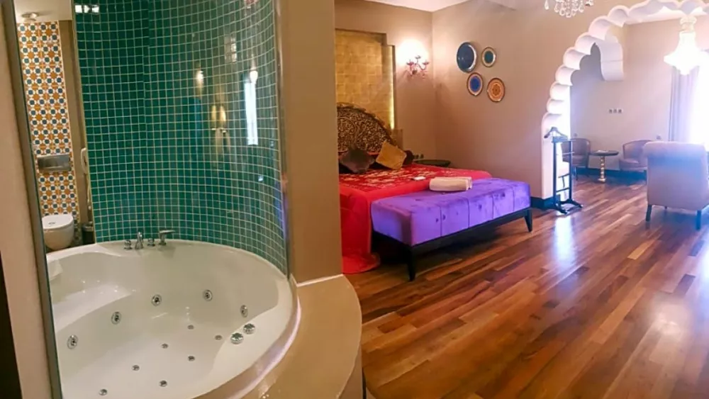 В отеле есть два люкса для молодоженов (105 м2) с восточными интерьерами. Каждый люкс состоит из гостиной зоны, спальни и ванной комнаты с ванной-джакузи. Забронируйте люкс для молодоженов и наслаждайтесь невероятно красивыми закатами, отдыхая в шезлонгах на просторной террасе номера...